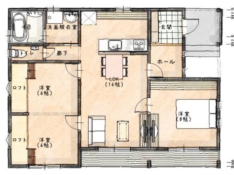 玄関は東玄関で 洋室二つは将来的に仕切ることができるようになっています。